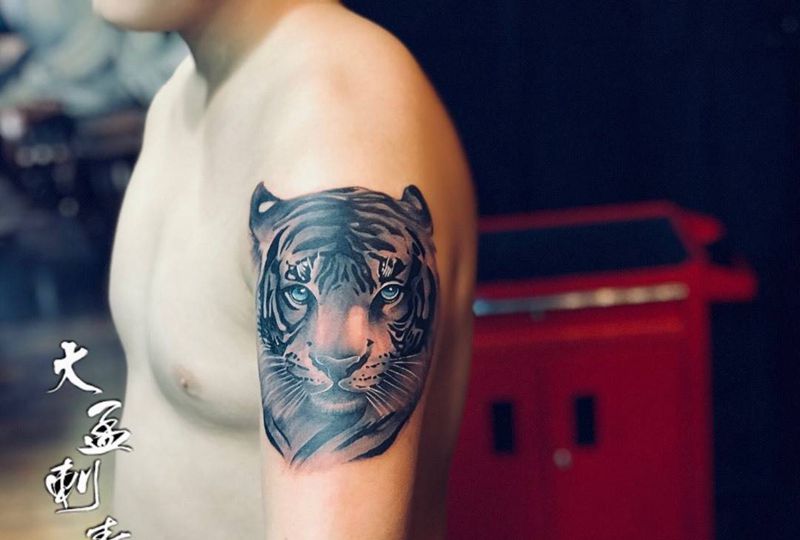 当前位置: 首页 >河南省郑州市纹身店-大孟刺青工作室纹身图案>大臂虎头纹身图片_成品纹身图案