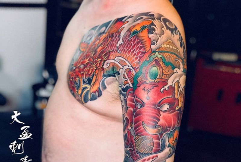 当前位置: 首页 >河南省郑州市纹身店-大孟刺青工作室纹身图案>彩色半甲纹身图片_成品纹身图案