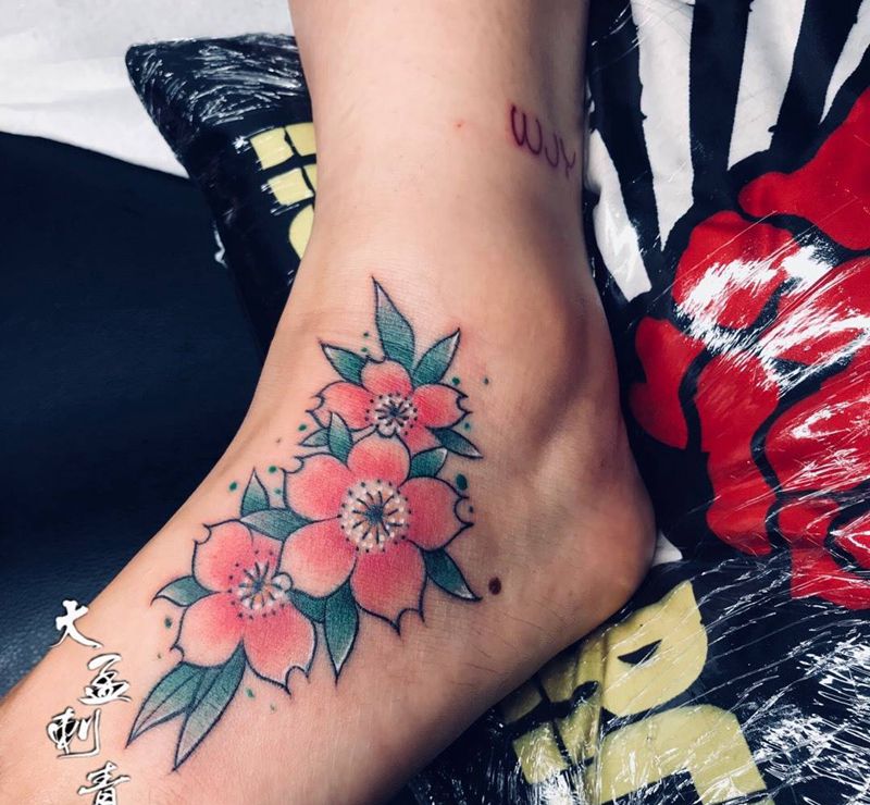 当前位置: 首页 >河南省郑州市纹身店-大孟刺青工作室纹身图案>脚背樱花纹身图片_成品纹身图案