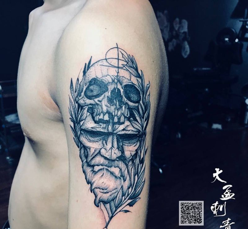 当前位置: 首页 >河南省郑州市纹身店-大孟刺青工作室纹身图案>点刺骷髅纹身图片_成品纹身图案
