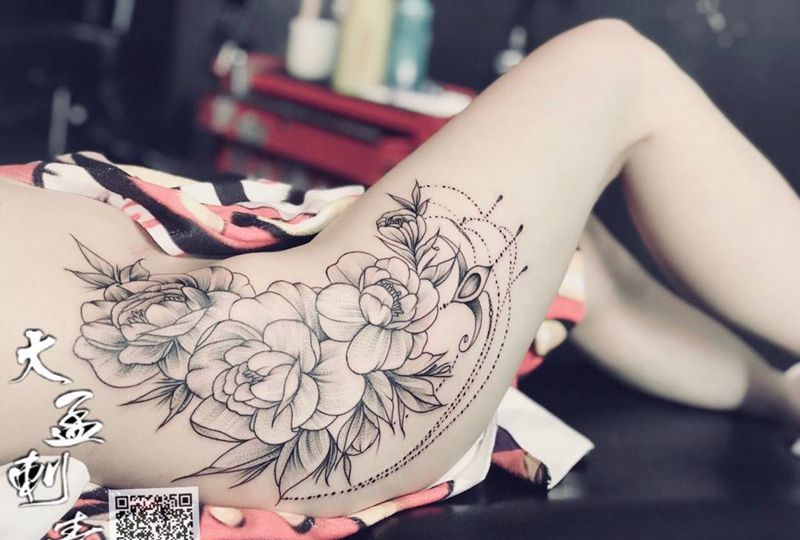 • 时尚性感的腹部莲花纹身图案