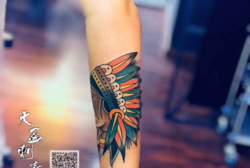 当前位置: 首页 >河南省郑州市纹身店-大孟刺青工作室纹身图案>School印第安人纹身图片_成品纹身图案