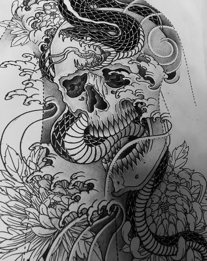 当前位置: 首页 >河南省郑州市纹身店-墨色刺青纹身图案>满背手稿纹身图片_背部腿部新传统纹身图案