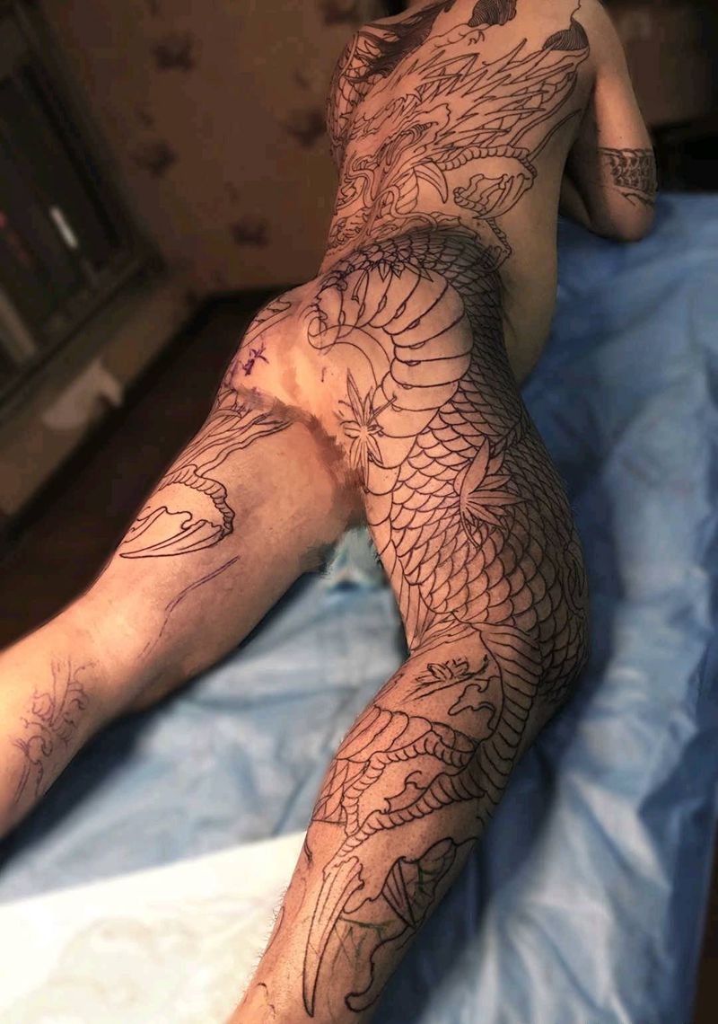 当前位置: 首页 >河南省郑州市纹身店-墨色刺青纹身图案>通体龙纹身图片_背部腿部新传统纹身图案