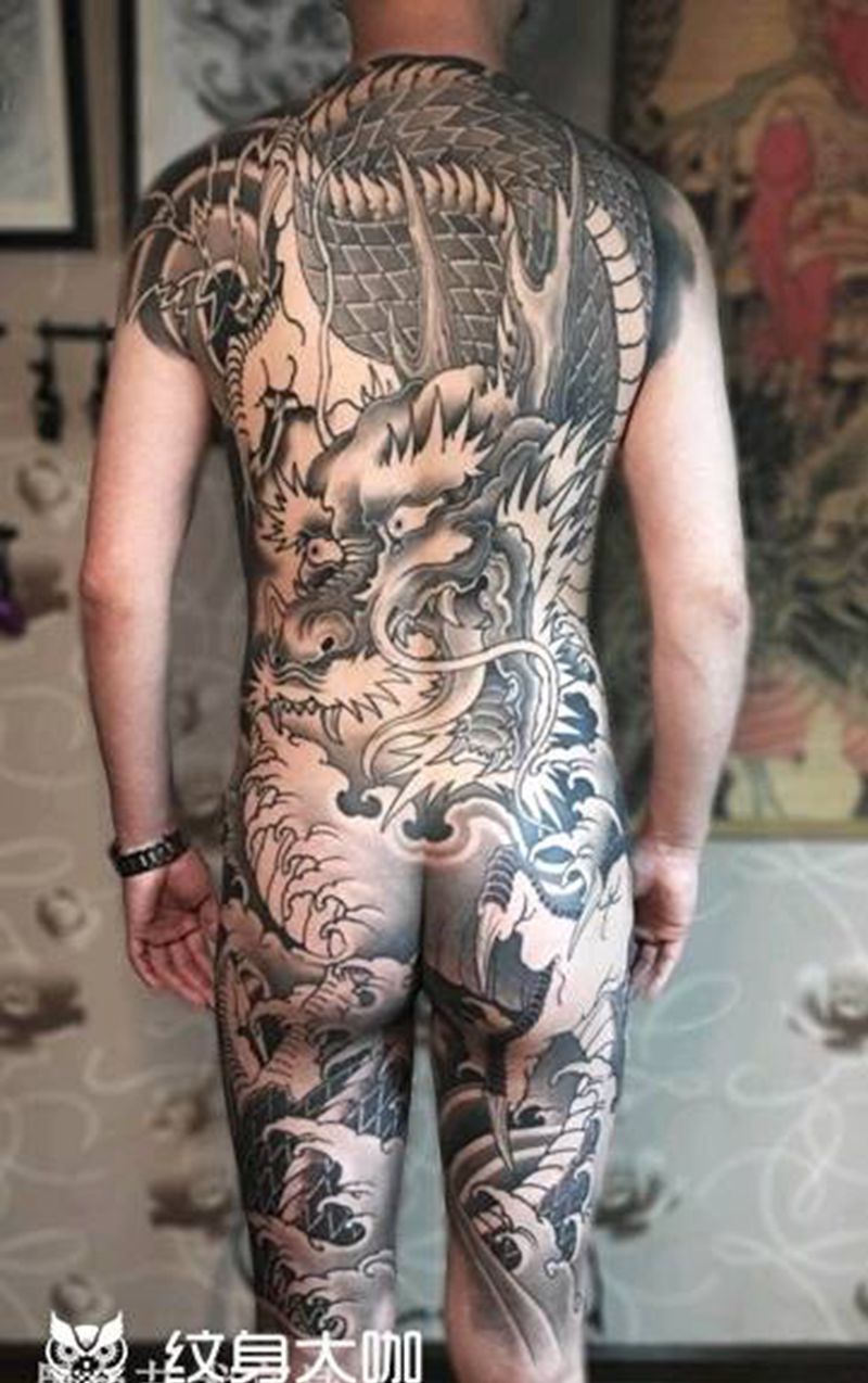 • T云龙九郎纹身图片_背部老传统云龙九郎纹身图案