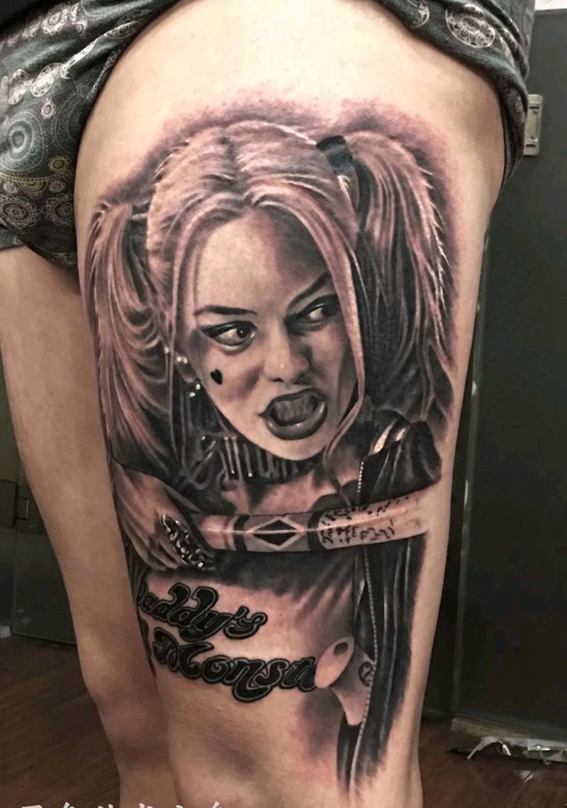 当前位置: 首页 >河南省郑州市纹身店-墨色刺青纹身图案>小丑女纹身图片_腿部欧美写实纹身图案