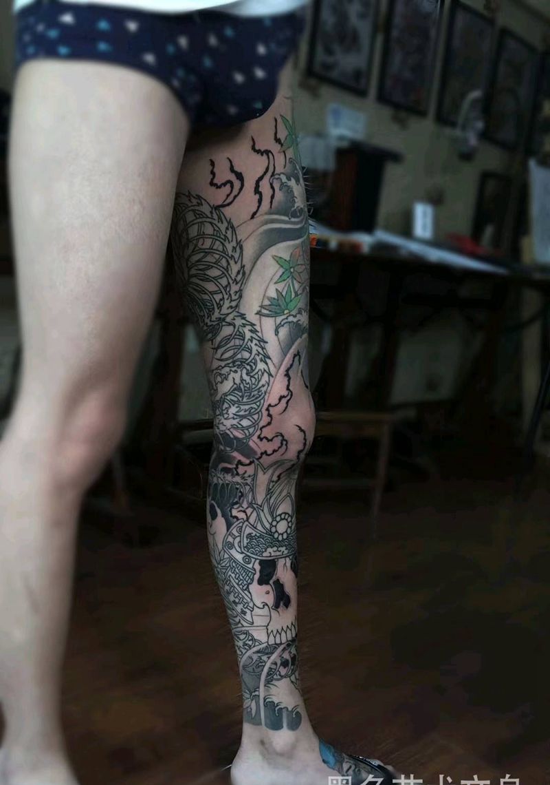 • T网红王老大花腿龙纹身图片_腿部新传统纹身图案