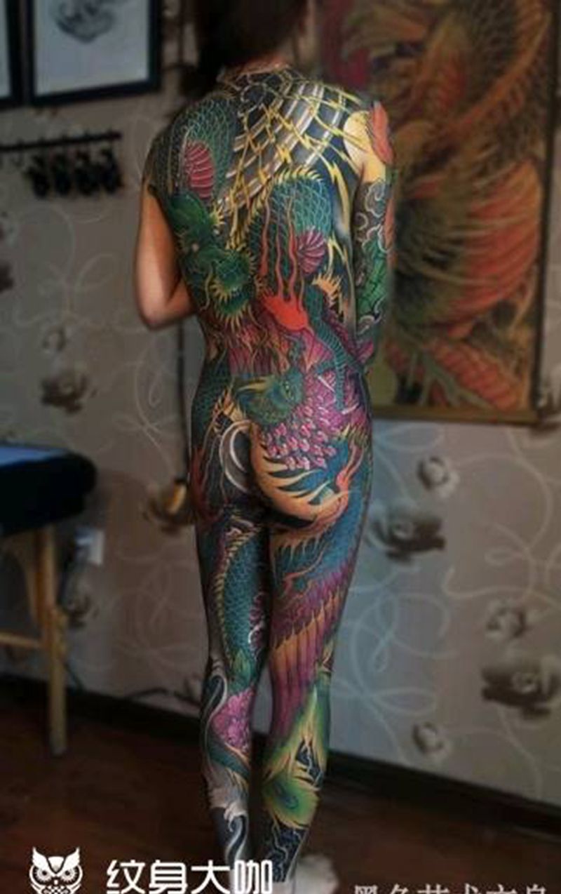 当前位置: 首页 >河南省郑州市纹身店-墨色刺青纹身图案>女通体“龙凤呈祥”纹身图片_背部腿部新传统龙凤纹身图案