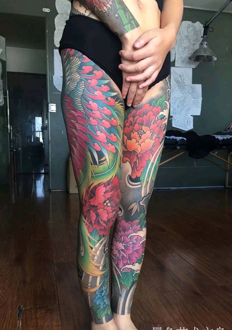 当前位置: 首页 >河南省郑州市纹身店-墨色刺青纹身图案>女通体“龙凤呈祥”纹身图片_背部腿部新传统龙凤纹身图案