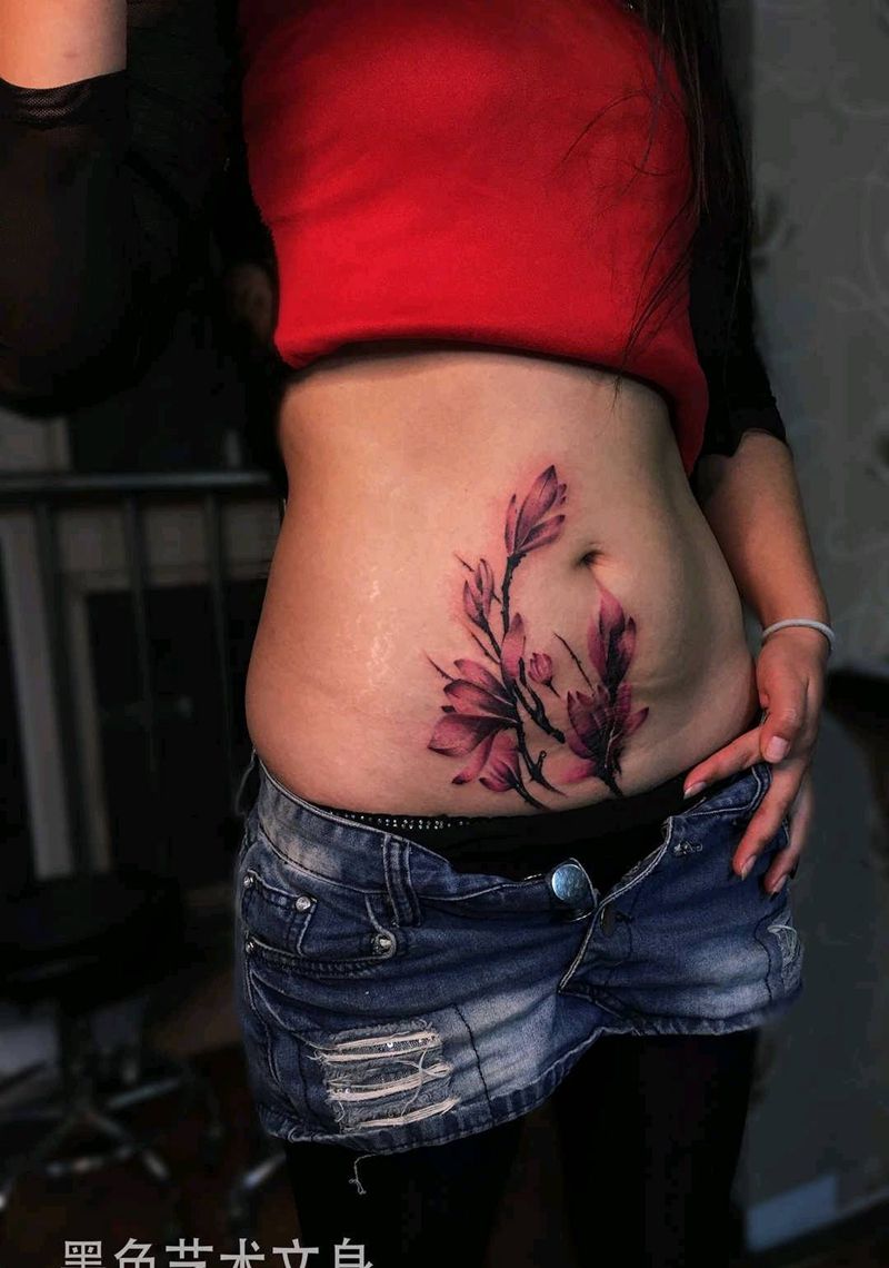 • 时尚性感的腹部莲花纹身图案