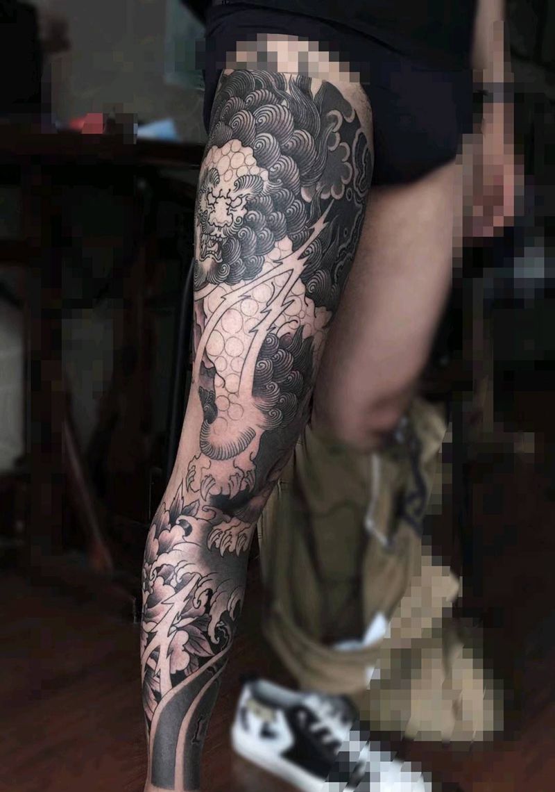 当前位置: 首页 >河南省郑州市纹身店-墨色刺青纹身图案>唐狮纹身图片_腿部新传统唐狮牡丹纹身图案