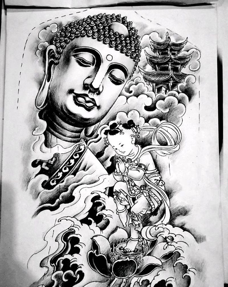 佛系满背纹身图片_背部腰部新传统老传统佛,哪吒纹身图案