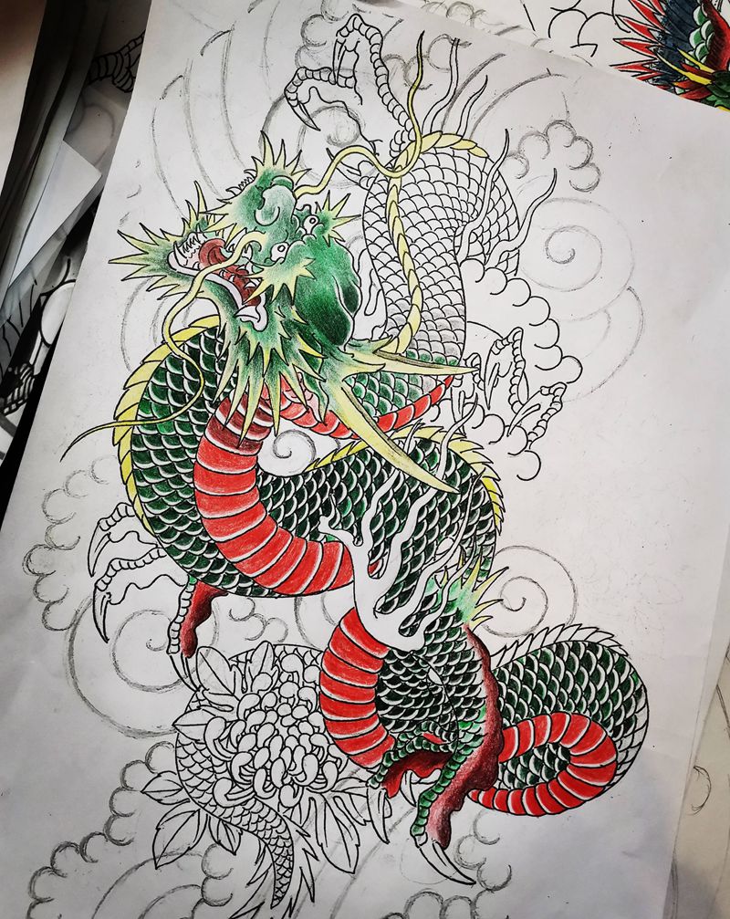 当前位置: 首页 >河南省郑州市纹身店-墨色刺青纹身图案>花臂/花腿龙纹身图片_手臂新传统老传统龙菊花纹身图案