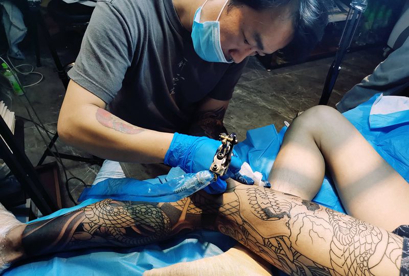 • T网红王老大花腿龙纹身图片_腿部新传统纹身图案