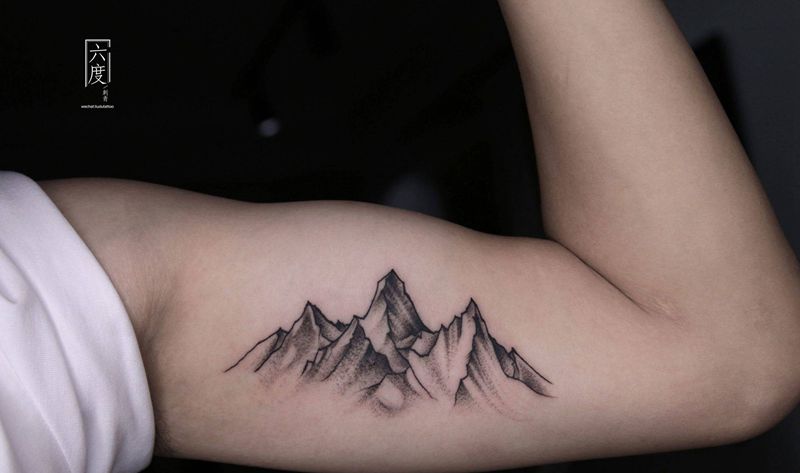 山 遮盖纹身图片_手臂几何纹身图案