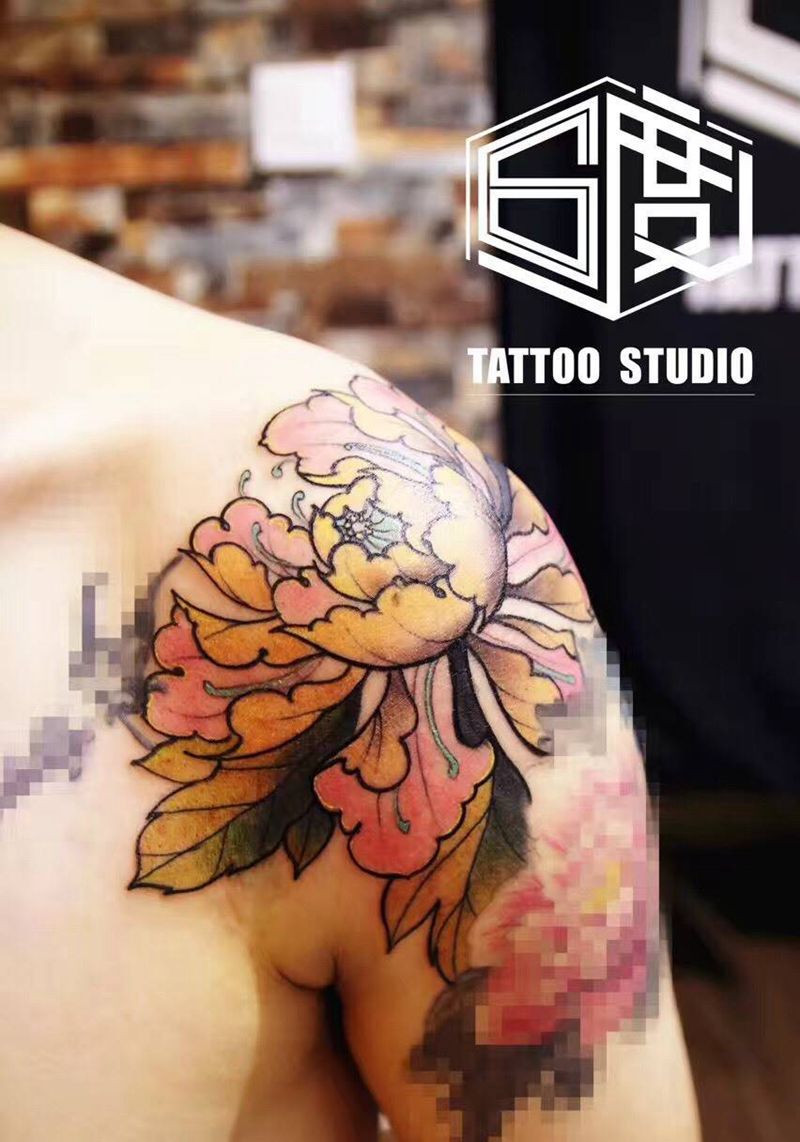 当前位置: 首页 >河南省郑州市纹身店-六度刺青纹身图案>牡丹花 肩花纹身图片