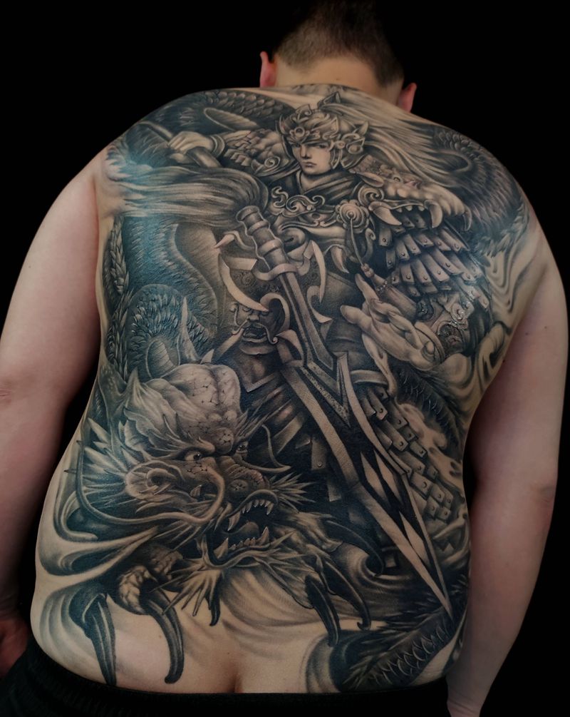 黑灰满背纹身图案