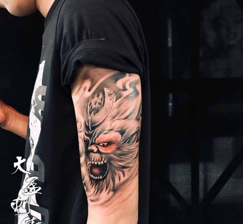 当前位置: 首页 >河南省郑州市纹身店-郑州黑刺刻工作室纹身图案>悟空。纹身图片
