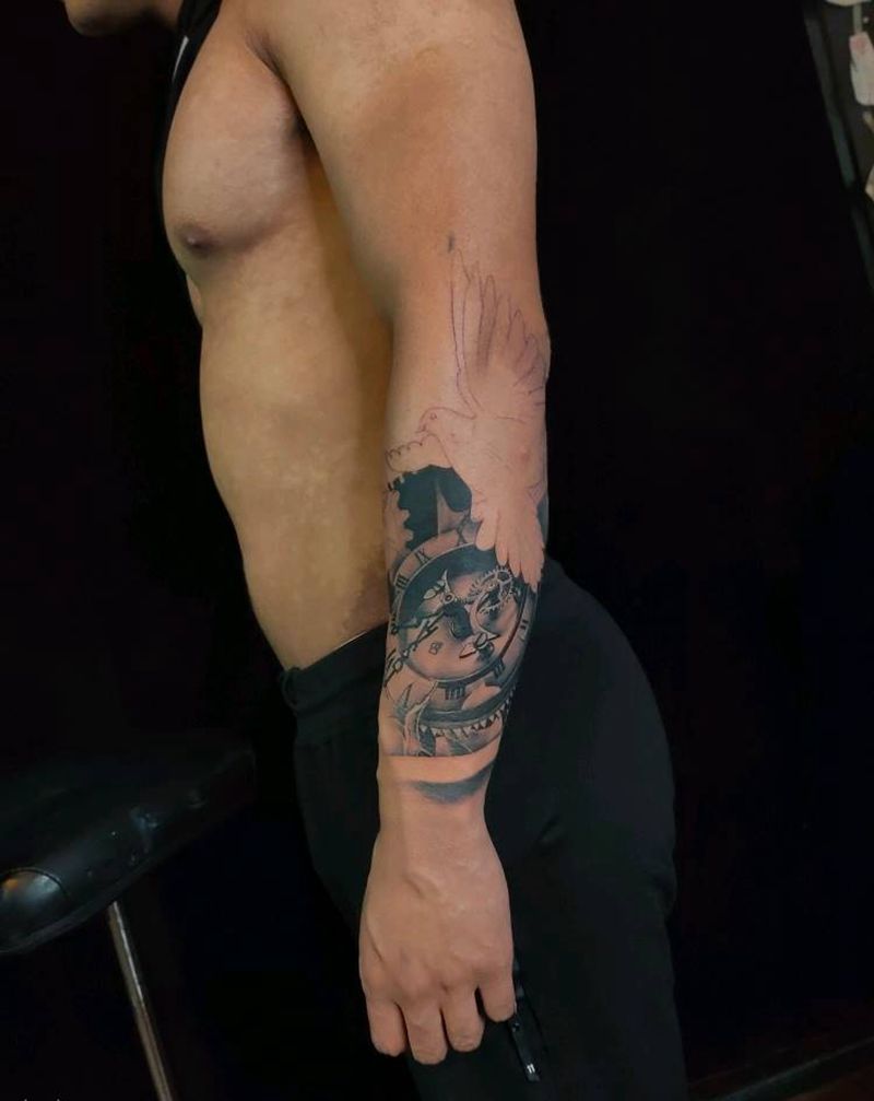 当前位置: 首页 >河南省郑州市纹身店-郑州黑刺刻工作室纹身图案>钟表鸽子纹身图片_欧美写实纹身图案