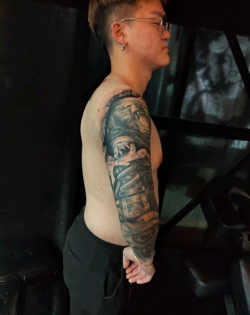 欧美花臂,熊非本人作品。纹身图片_欧美写实纹身图案