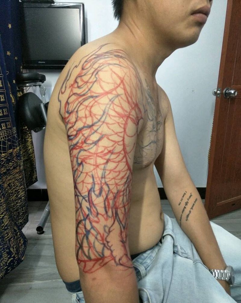 • T网红王老大花腿龙纹身图片_腿部新传统纹身图案