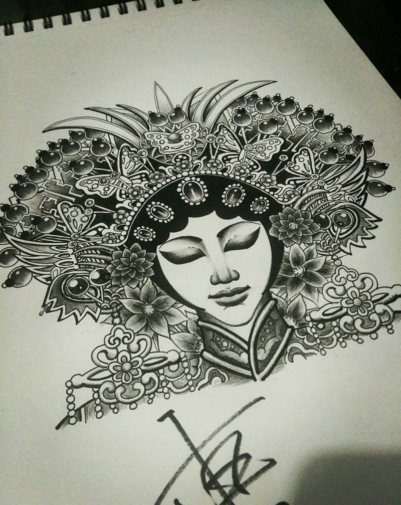 当前位置: 首页 >河南省郑州市纹身店-東宫刺客纹身图案>待上浓妆戏一场,纹身图片
