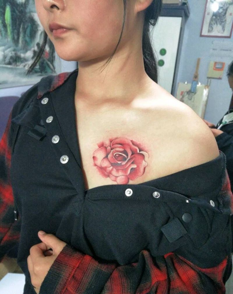 • 女性大花胸纹身_43张霸气漂亮的女性大花胸纹身图案作品