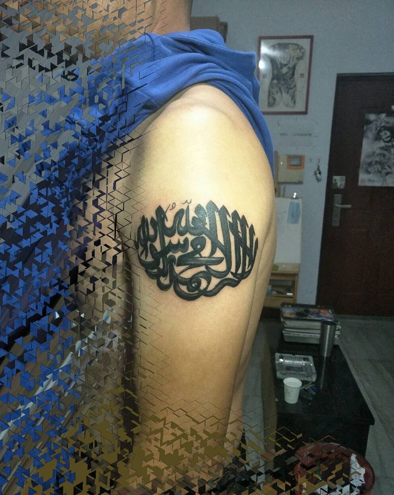 当前位置: 首页 >河南省郑州市纹身店-東宫刺客纹身图案>顾客自带图。清真言纹身图片