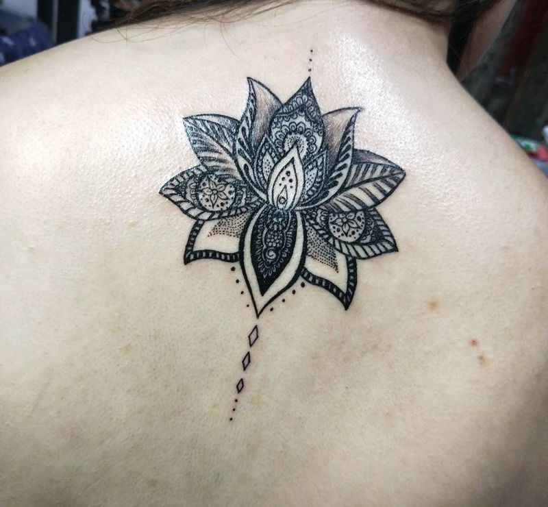 曼陀罗花纹身图片_颈部习俗宗教成品纹身图案
