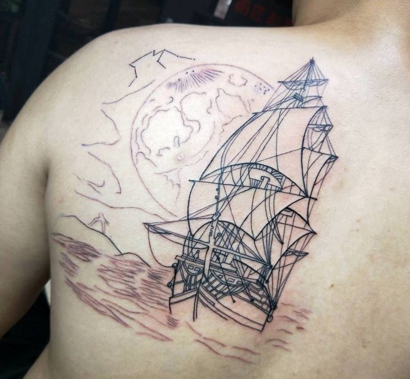 帆船(未完成)纹身图片