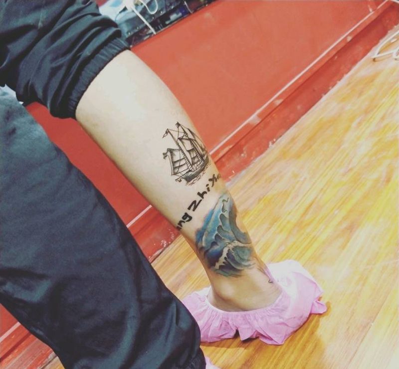 • T网红王老大花腿龙纹身图片_腿部新传统纹身图案
