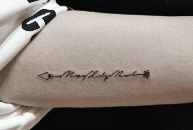 当前位置: 首页 >河南省开封市纹身店-画匠刺青纹身图案>原创小英文纹身图片_手臂几何花体字英文小清新纹身图案