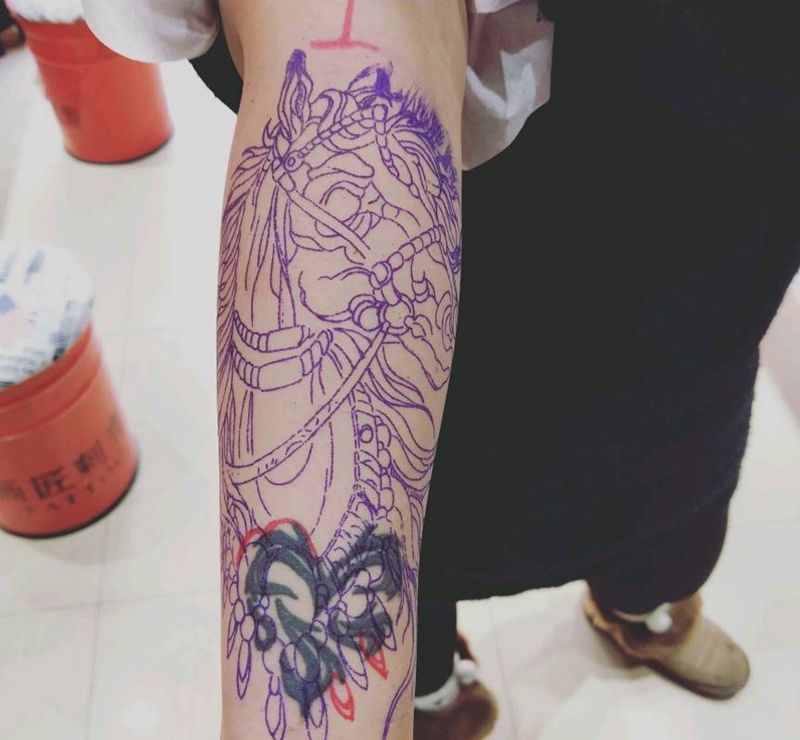 骏马(未完成)纹身图片_手臂欧美动物原创纹身图案