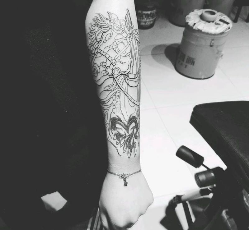 骏马(未完成)纹身图片_手臂欧美动物原创纹身图案