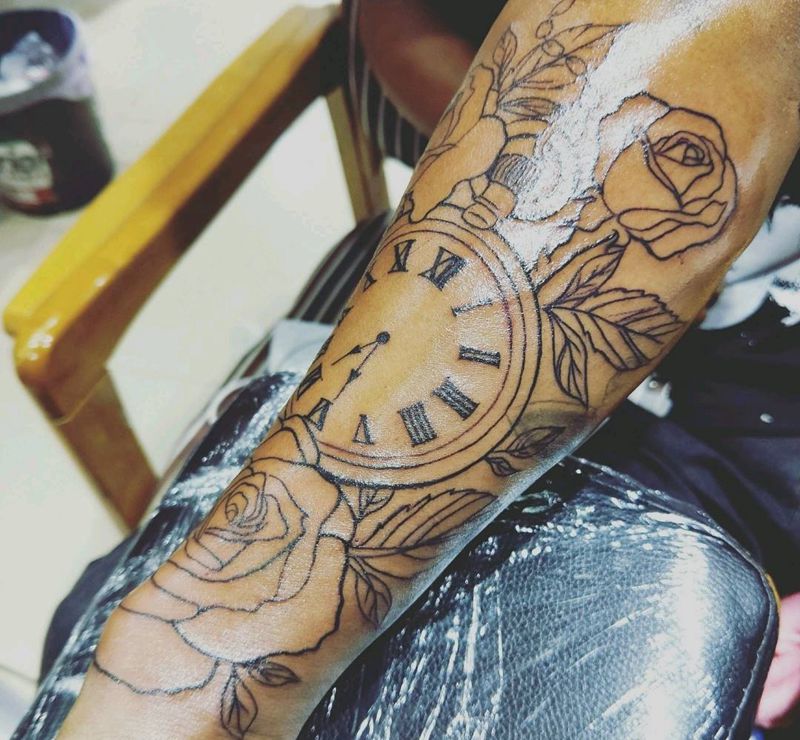 定格的时间(未完成)纹身图片_手臂欧美清新静物成品纹身图案