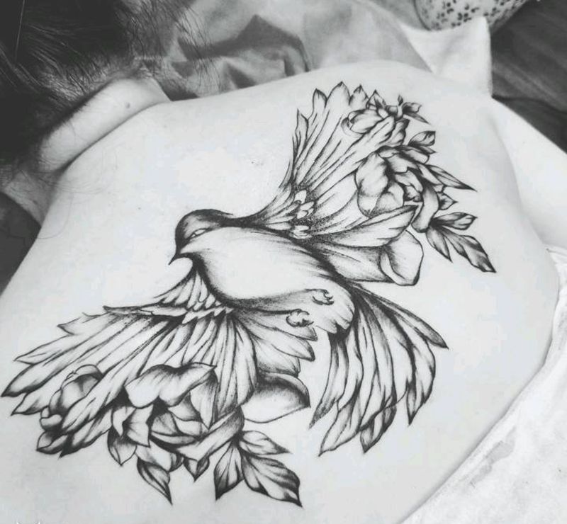 吉祥鸟纹身图片_背部欧美清新写实动物成品纹身图案