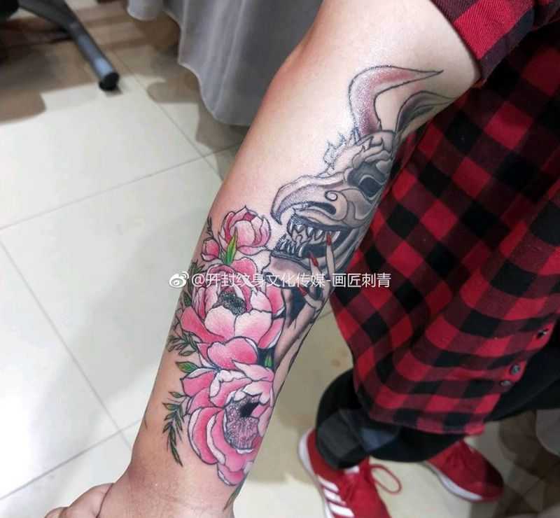 当前位置: 首页 >河南省开封市纹身店-画匠刺青纹身图案>艺妓未完成纹身图片_手臂手部新传统艺妓面具般若纹身图案