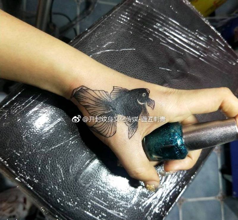 遮盖纹身图片_手部图腾鱼遮盖纹身图案
