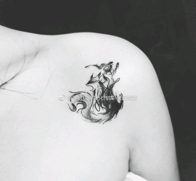 遮盖设计纹身图片_颈部肩部水墨纹身图案