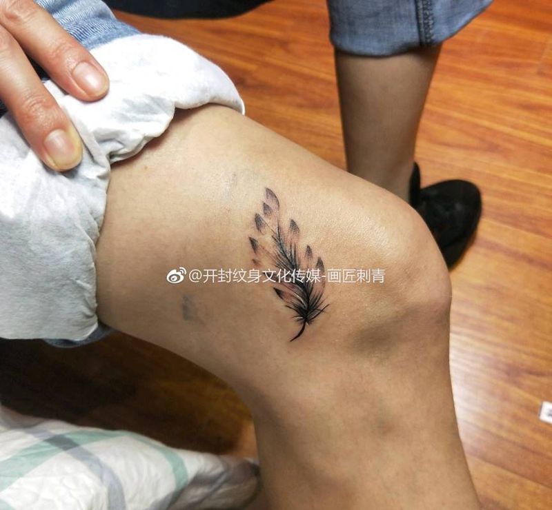 伤疤遮盖纹身图片_腿部羽毛遮盖纹身图案