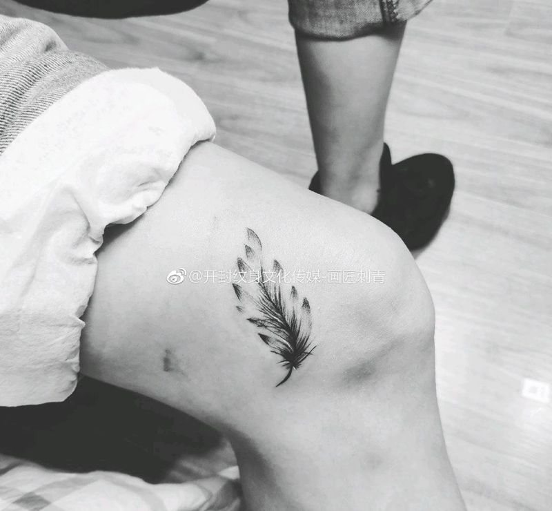 伤疤遮盖纹身图片_腿部羽毛遮盖纹身图案