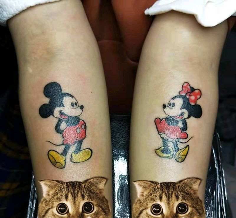 米奇米妮纹身图片_手部手臂New School米奇米妮情侣纹身图案