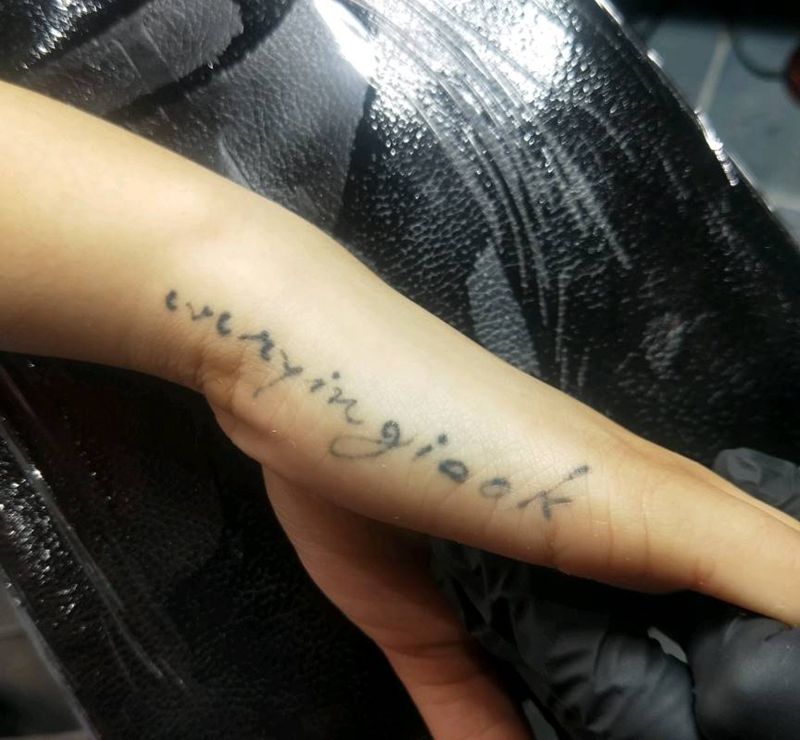 首次洗纹身即刻效果纹身图片_手部花体字洗纹身图案