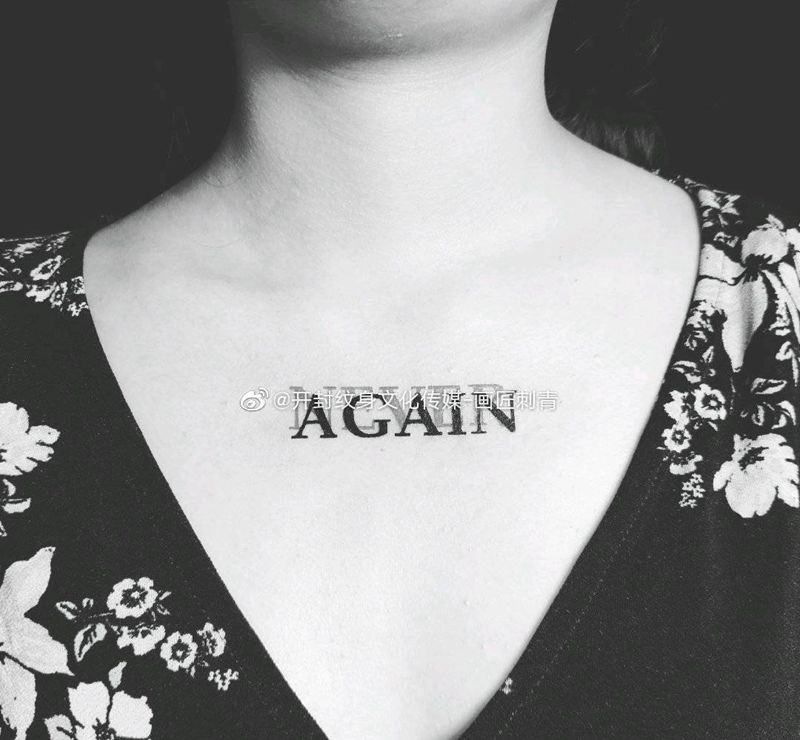 再也不会纹身图片_颈部胸部花体字英文纹身图案