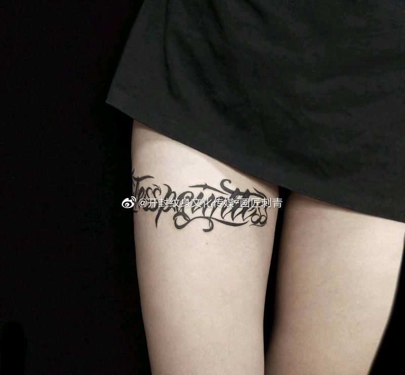 当前位置: 首页 >河南省开封市纹身店-画匠刺青纹身图案>无畏无谓纹身图片_腿部花体字英文大腿腿纹身图案