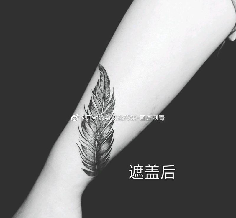 斑迹遮盖纹身图片_手臂手部欧美写实遮盖羽毛纹身图案