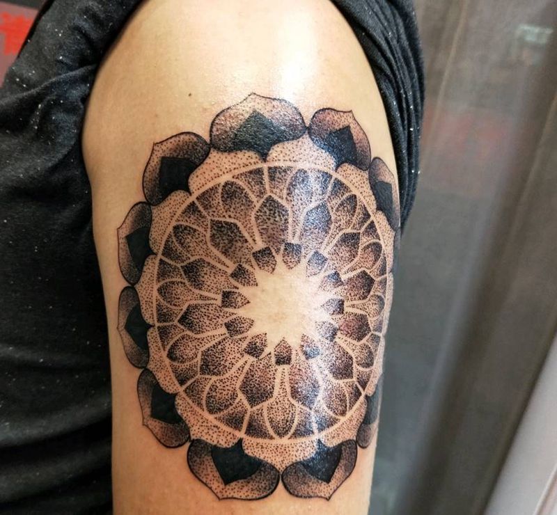 点刺半胛1/3部分纹身图片_手臂肩部图腾点刺半胛纹身图案