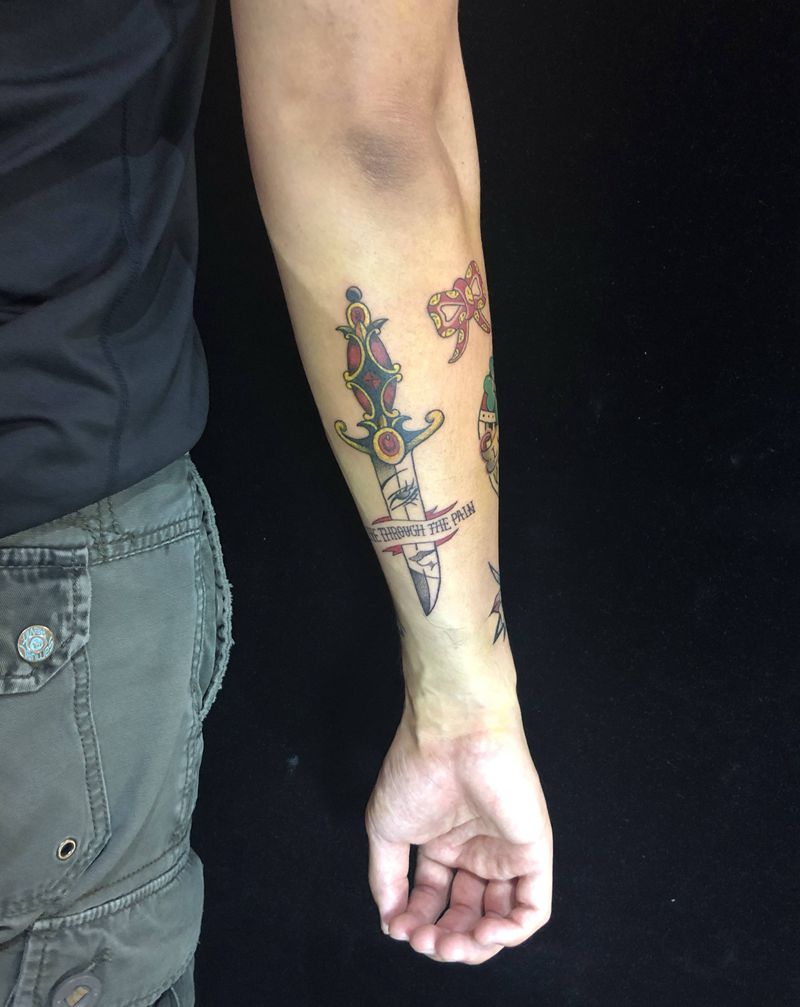 当前位置: 首页 >河南省开封市纹身店-二十七号纹身工作室纹身图案>old school 匕首纹身图片_手臂Old School纹身图案