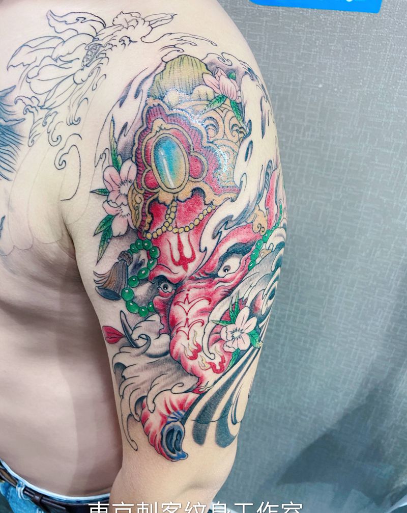 当前位置: 首页 >河南省开封市纹身店-東京刺客纹身工作室纹身图案>象神纹身图片_手臂新传统纹身图案
