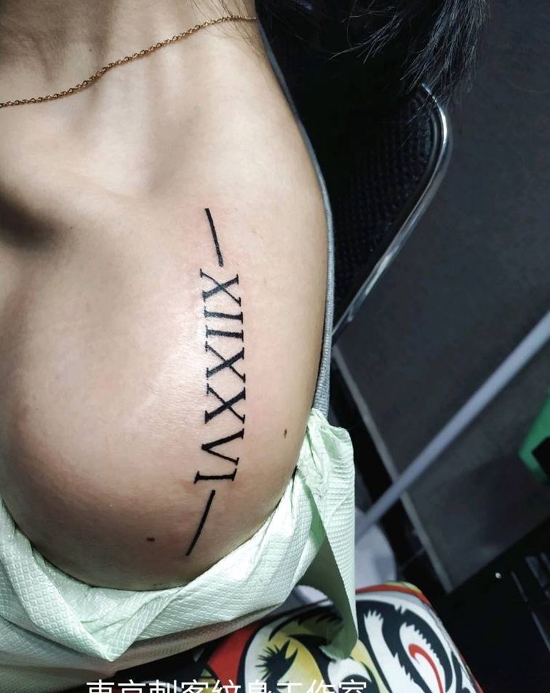 肩部罗马字母纹身图片_肩部花体字纹身图案